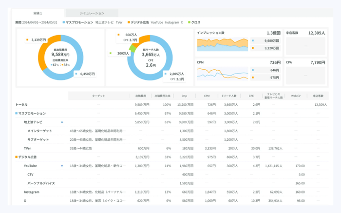 - テレビCMとデジタル広告を統一指標で比較・評価し、費用対効果を可視化