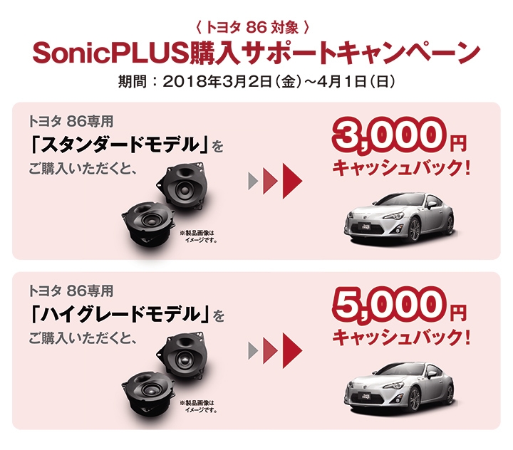 トヨタ 86対象「SonicPLUS購入サポートキャンペーン」概要