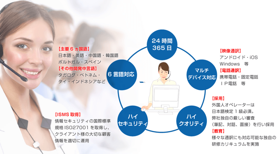 同社は、クライアント企業の新たな便益を創造するEnhancedBPO企業として、企画・営業・運用などあらゆるプロセスからのクライアントの収益化サポートを行い、コアコンピタンスに付加価値を創造する、新たな定義のBPO事業。主に24時間365日・7カ国の言語に対応した多言語カスタマーサービスを中心とし、営業支援、IT支援を提供。