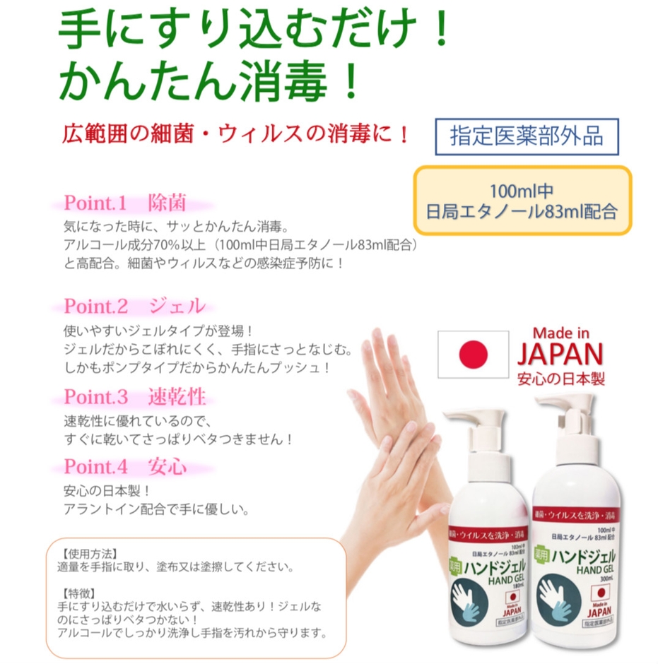 安心の日本製! 日局エタノール83%配合の薬用ハンドジェル(指定医薬品外品)