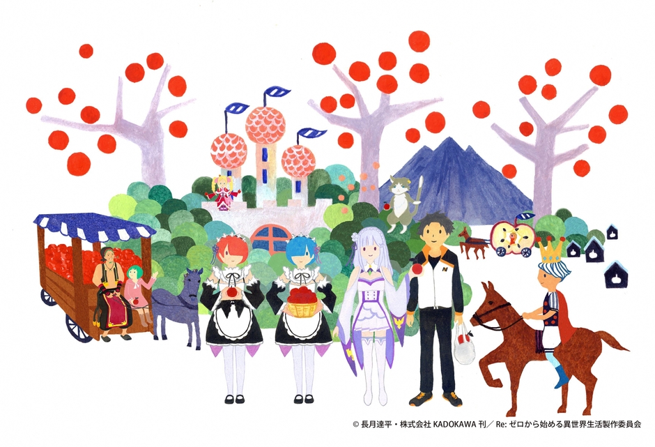 完全新作アニメの劇場上映やTVアニメ第2期製作が決定している人気アニメ『Re:ゼロから始める異世界生活』にて、作中にりんご売りのキャラクターが登場することに因み、りんごの収穫時期の弘前市りんご公園を舞台に「りんご王国」とのコラボが実現いたしました。