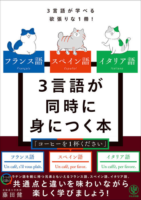 フランス語、スペイン語、イタリア語の3言語をまとめて習得できる「欲ばりな本」が登場!おしゃべりネコたちと一緒に、自分のペースで楽しく勉強しよう