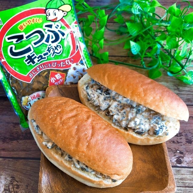 70年以上の歴史ある東海漬物株式会社様の代表商品きゅうりのキューちゃんは50年以上も愛され続けている、日本を代表する味と言える漬物です。そのきゅうりのキューちゃんを使用した初代コラボパンの“きゅうりのキューちゃんコッペ”をさらに幅広い年代でも食べやすいように進化させてできたのが“きゅうりのキューちゃん サラダパン”です。きゅうりのキューちゃんのこつぶバージョンの“こつぶキューちゃん”を使用することで、食べやすく程よいパリパリ食感を感じ、マヨネーズによってマイルドな味わいに仕上げました。その具材を自慢の口どけの良いコッペパンに挟むことで手軽に食べやすいコッペパンが出来上がりました。