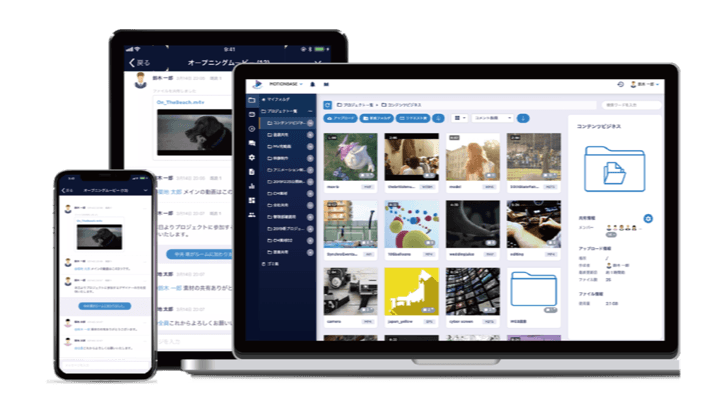 プロジェクト権限に紐づいたチャットやファイル共有の仕組みを提供しているので、情報やデータの共有範囲を管理者がコントロール可能。データ共有とコミュニケーション機能を内包したプラットフォームで、発売前の商品情報や作品情報など機密情報を扱うことが多い映像・放送・広告業界で働くプロ向けのサービスとして本年4月3日に提供開始しています。