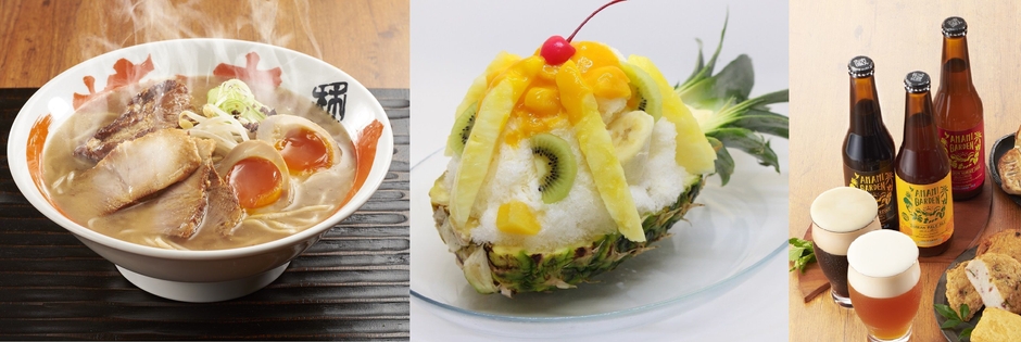 昨年も好評を博したイートインには、とろとろの柔らかいチャーシューが注目の『らぁめん柿の木』が初登場。また、『天文館むじゃき』では盛りだくさんのフルーツとパイナップルの器がかわいいトロピカル白熊を販売。さらに、奄美のクラフトビールもイートインで味わうことができ、仕事帰りの“ちょい飲み”もおすすめです。