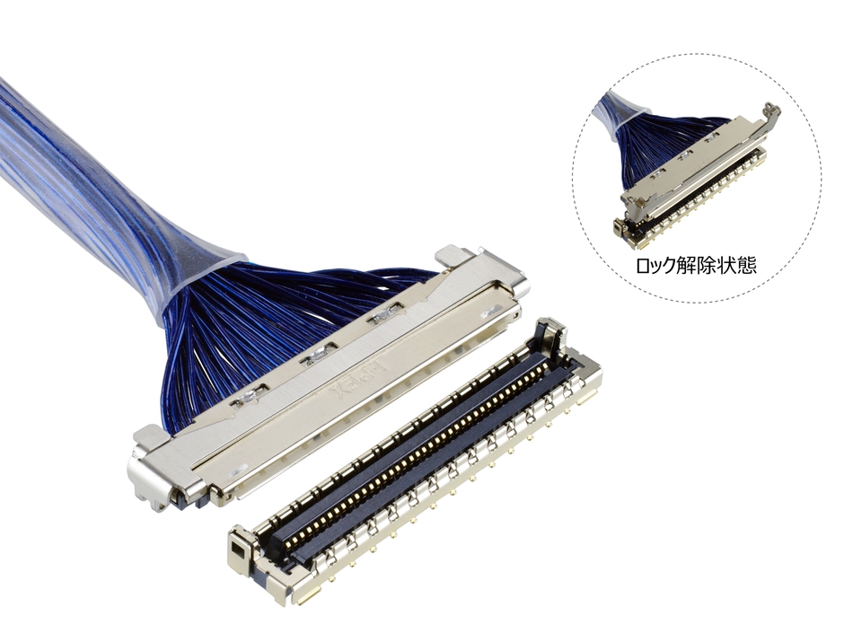 - Thunderbolt(TM) 3 (20 Gbps/lane)などの高速伝送内部接続に最適な細線同軸コネクタ