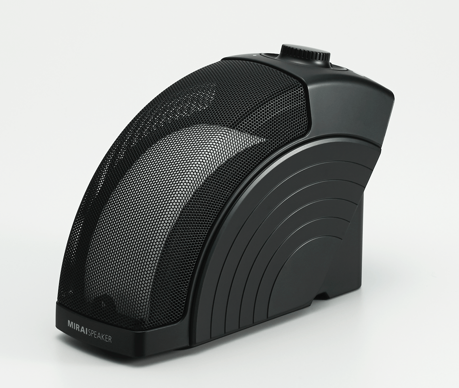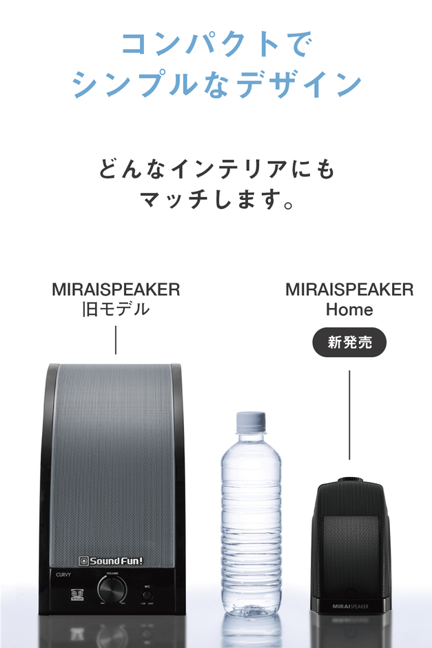 「ミライスピーカー・ホーム」では、平板を湾曲させた曲面振動板から『曲面サウンド』と、従来型のコーン型振動板からのフルレンジスピーカー、両方を搭載した新開発ハイブリット設計を採用。これら2つのスピーカーからの合成音により、聴こえに困っている方も、そうでない方も、快適に聴こえやすい音を一緒に楽しむことができます。