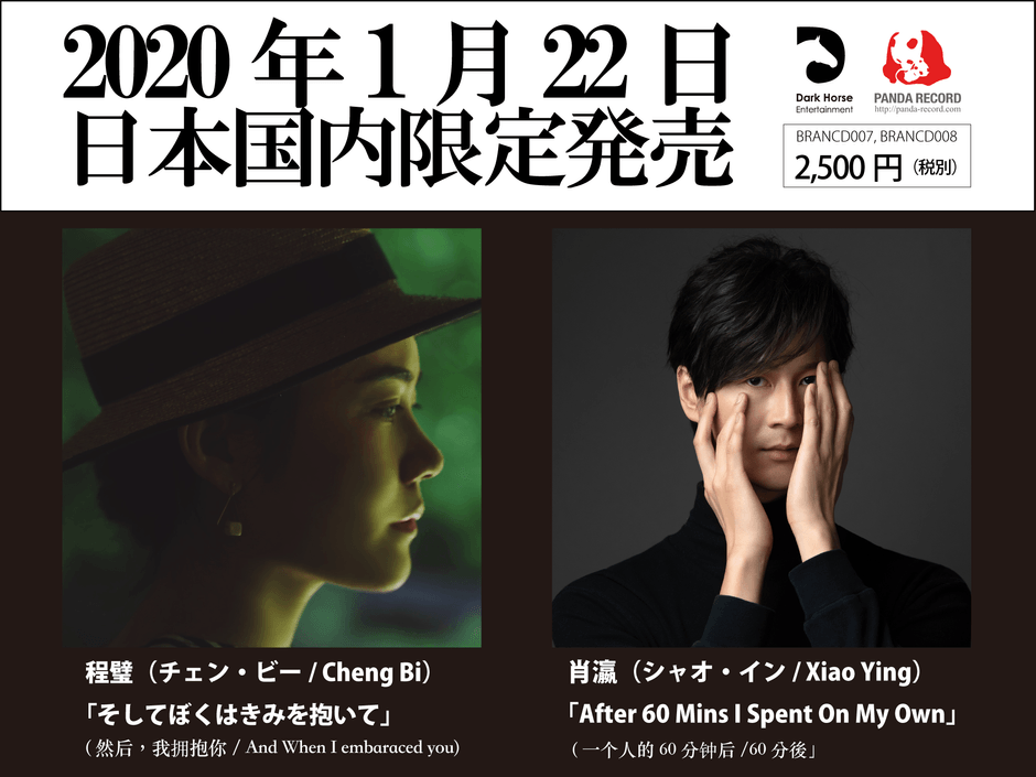 中国の音楽を日本に紹介するPANDA RECORD(ANNA PATIO株式会社)は、中国を代表する女性シンガーソングライター 程璧(チェン・ビー)の6枚目となる最新アルバム「そしてぼくはきみを抱いて」と、中国の気鋭若手ピアニスト 肖瀛(シャオ・イン)のデビューアルバム「After 60 Mins I Spent On My Own」を、2020年1月22日(水)からTOWER RECORDSなどの主要CDショップで日本限定発売します。