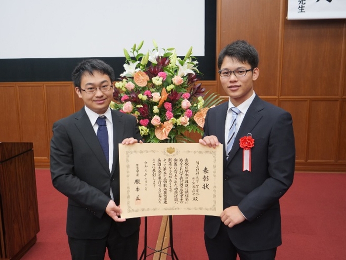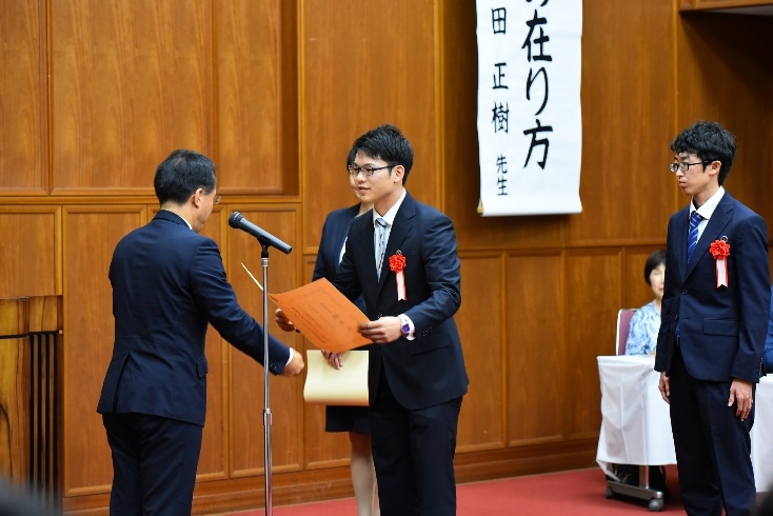 表彰式には、献血活動に取り組んでいる学友会を代表して工学部生命医療工学科4年久戸瀬太一さんと、同部バイオ・応用化学科4年樋野将貴さんが出席。表彰状を受け取った久戸瀬さんは晴れやかな表情で、「この活動を通して献血の大切さを学ぶことが出来ました。これからも機会があれば積極的に協力していきたい」と話していました。