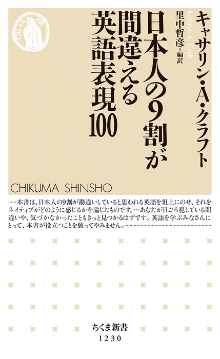 教科書に載っていても実は通じない英語、何気なく使っている和製英語など、日本人が身につけている英語には勘違いをしている表現がたくさんあります。著者のキャサリン・A・クラフトさんは滞日30年超の英語講師であり、本書は、長年日本人の英語に接してきた彼女だからこそ気付いた、“日本人が勘違いしがちな英語100例”をわかりやすく紹介しています。英語初心者から上級者まで、驚きと納得の声とともに幅広い人たちから支持を得ています。