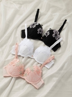通常は使われない細い刺繍糸を使用し、極細の筆で描かれたような繊細なデザインを表現。レースの美しさに最もこだわることで身に着けたときの美しさを演出し、女性としての本能を開花させます。