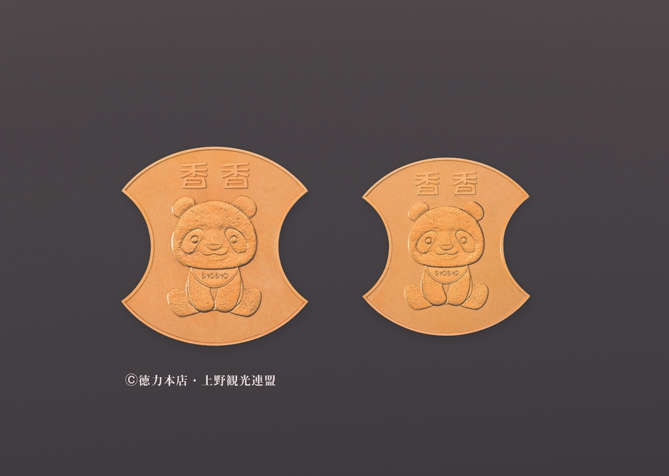 そんな素敵な意味合いと香香のやわらかく可愛らしいイメージを「分銅金」・「置物」にて表現いたしました。尚、本記念品の製作販売にあたり、パンダ名「香香」の使用は上野観光連盟の許諾を得ております。
