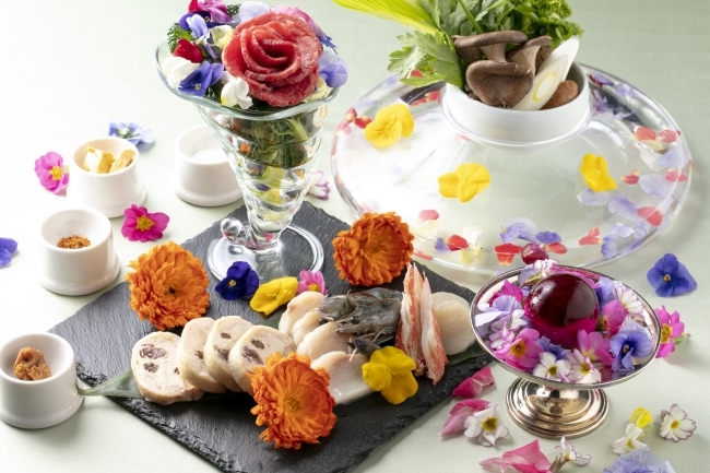 【ウェスティンホテル仙台】 華やかなエディブルフラワーで春の訪れを感じる鍋料理「フルール ド フォンデュ」を発売。
