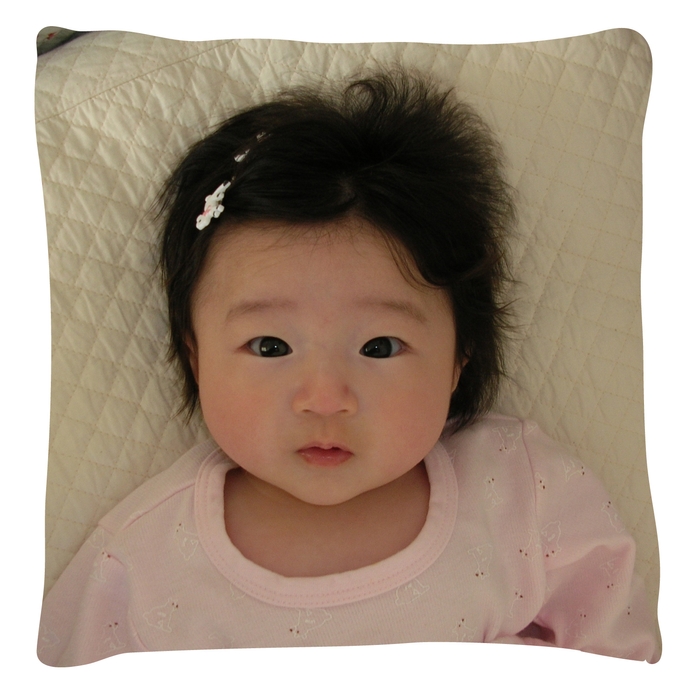娘が生まれた記念に、赤ちゃんの写真をいつもそばに残しておきたいので、クッションカバーに