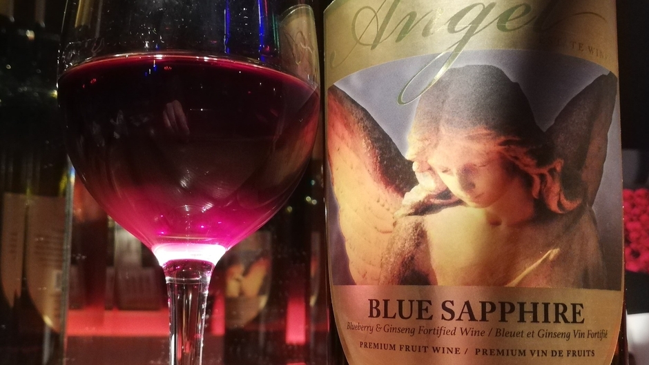 「ブルーベリーで造られたの酒精強化ワイン。サファイアと名付けられたこのワインは、アメリカンジンセン(西洋人参)と一緒に醸造され、ブルーベリーの甘酸っぱさに、ジンセン特有の木のぬくもりを感じる香りがアクセントとなり、他には類をみない味わいを堪能することができます。またジンセンにはストレスに適応する力を高めてバランスを回復する働きがあり、ブルーベリーとジンセンの様々な栄養素を含む特別なワインです。中華料理やスパイシーな肉料理と一緒に。」