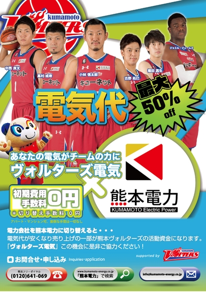 電気代の一部が熊本ヴォルターズの活動資金に! 『ヴォルターズ電気』申込受付を開始