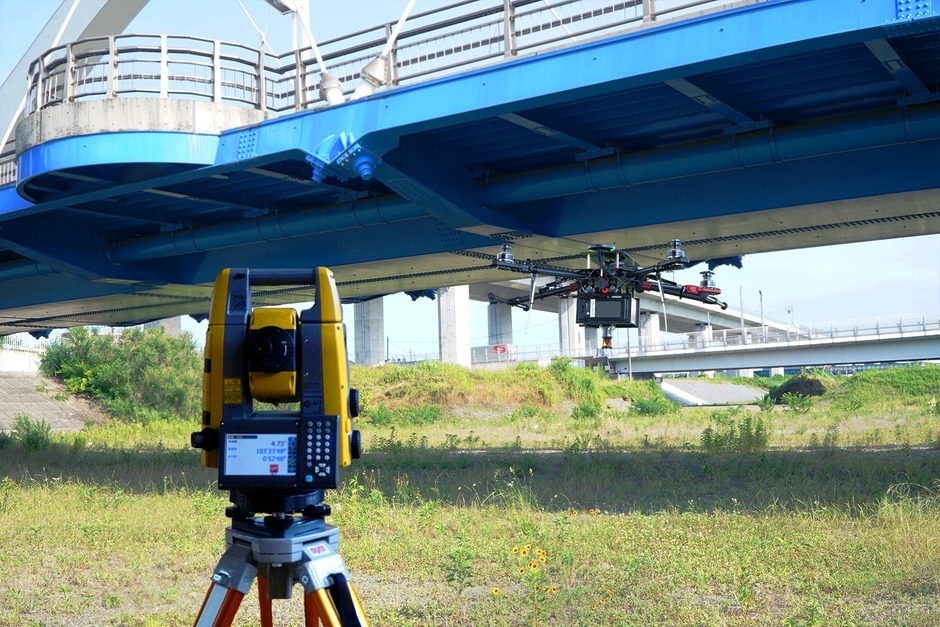 非GPS環境下におけるドローンの自動飛行システムを開発 トータルステーションを用い橋梁下や屋内などの飛行を実現