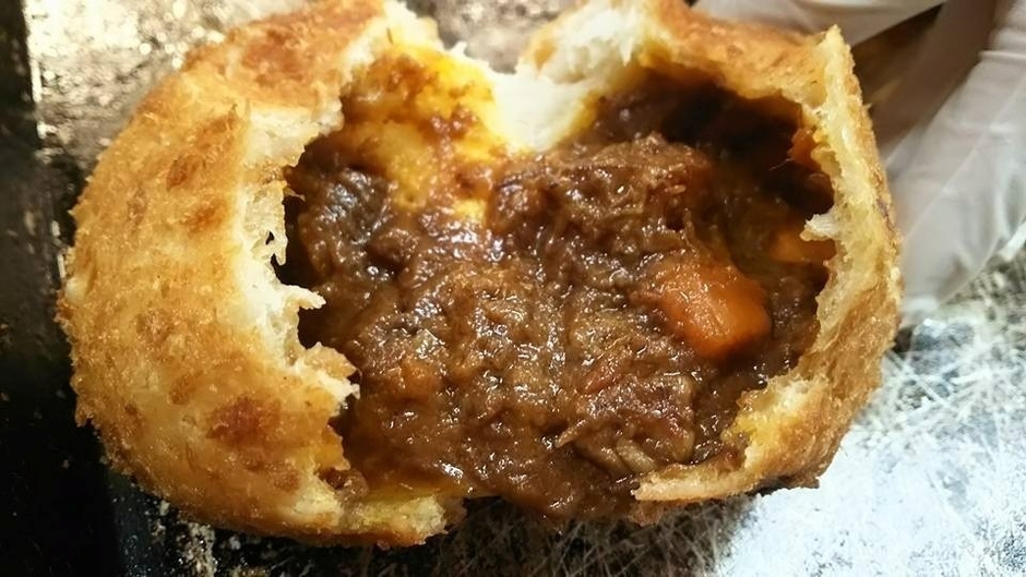 こむぎのおはなし店ではお馴染みの「牛肉ゴロゴロカレーパン」は、赤ワインでじっくり煮込み、ほろほろの牛肉と大きい人参が特徴的です。創業当時より試行錯誤を繰り返し、魂込めて開発されたカレーパンは、パンパティの代名詞でもあります。