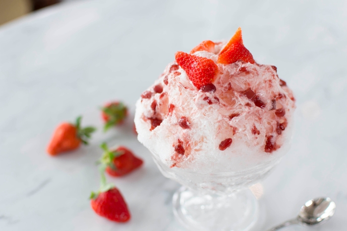 NEO特製プリンや自家製珈琲ゼリーなどをつかった、レイヤーも美しいパフェ3種に、定番のいちご味や、尾道のお茶屋さんの抹茶を使用したかき氷は、食べ進めるとわらび餅とバニラアイスが登場。せとうちの塩をつかった塩ミルクも暑いこの季節におすすめです。