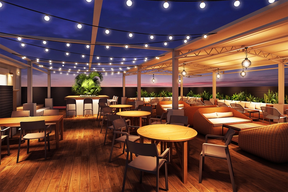 名古屋で話題を呼んだリゾート風ルーフトップがついに大阪・心斎橋へ「NAMBA BEERGARDEN」として初上陸。ビル最上階から眺める煌めく夜景、リゾート感漂うラタン調ソファ、イルミネーションが照らすラグジュアリーな空間で、特別な夏の夜を演出します。