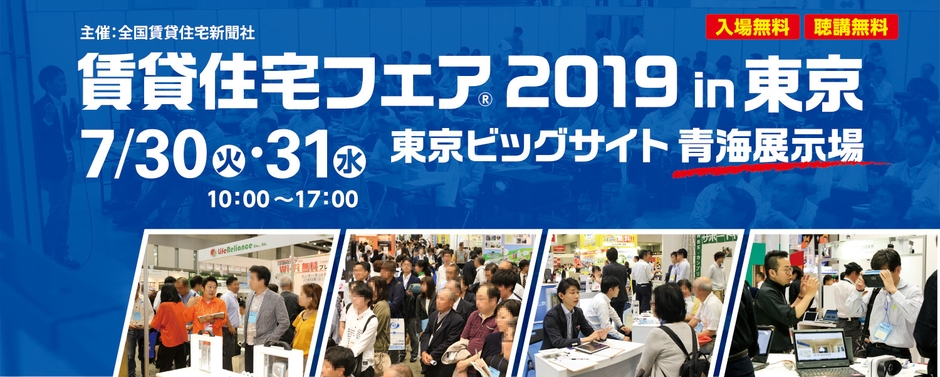賃貸住宅業界向け専門紙『週刊 全国賃貸住宅新聞』、不動産オーナー向け経営情報誌『月刊 家主と地主』を発行する株式会社全国賃貸住宅新聞社(東京都中央区)は、7月30日(火)・31日(水)に東京ビッグサイト・青海展示棟にて『賃貸住宅フェア2019in東京』を開催いたします。