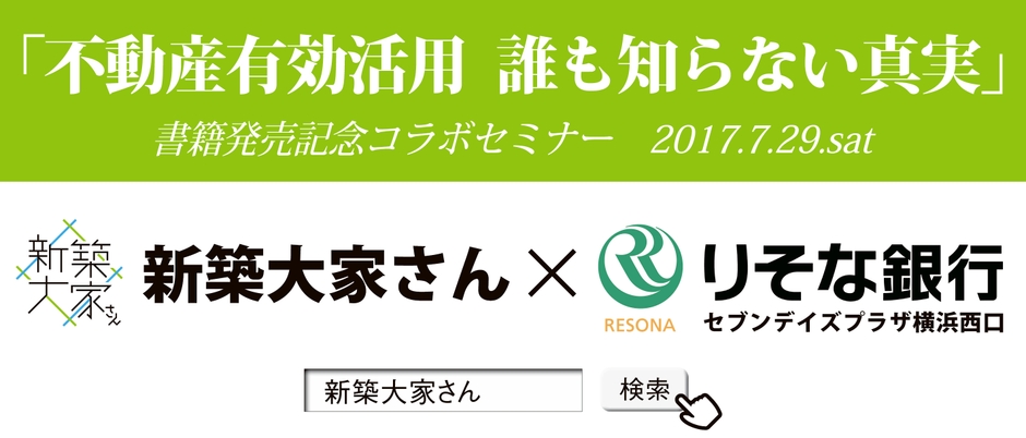 新築大家さん×りそな銀行 書籍発売記念コラボセミナー 『不動産有効活用 誰も知らない真実』を7月29日に開催