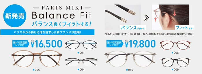 つるの両先端に「おもり」を装着することにより、レンズとの重心がつり合うよう設計された新しいフレームです。重心が耳の後ろに移動することでフレームのズレや疲れが軽減され、安定した快適な掛け心地を実現します。