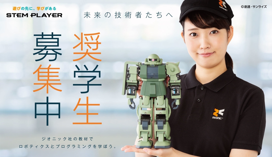 株式会社バンダイ 新規事業室は、2019年10月よりプレミアムバンダイ・他にて受講予約開始予定のZEONIC社のモビルスーツ開発を体感しながら、ロボティクスの基礎や、プログラミングの概念を学べる中学生以上を対象としたSTEM学習コース『ZEONIC TECHNICS』(価格未定)(発売元:株式会社バンダイ)の講習受講権利が当たるTwitterキャンペーンを2019年7月31日(水)に開始いたします。「ZEONIC TECHNICS」を無償で受講の機会を提供されたら、「何を学びたいか」そして、「学んだ先に成し遂げたいことは何か?」を、公式アカウントフォロー(@zeonic_technics)の上「#ジオニックテクニクス奨学生」「#ジオニックドリーム」のハッシュタグを付けてご応募ください。審査の上06名様に「ZEONIC TECHNICS」の受講権利が当たります。