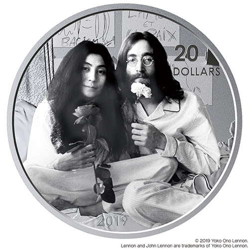 泰星コイン株式会社(本社:東京都豊島区/代表取締役社長:岡 政博)は、『カナダ発行 ジョン・レノン「平和を我等に」発表50周年 20ドル銀貨』の予約販売を、2019年5月23日(木)に開始いたします。伝説的なロックン・ロールカップルである、ジョン・レノンとオノ・ヨーコによる1969年の平和活動パフォーマンス「ベッド・イン」50周年を記念した、二人の肖像が描かれた重量31.39g、品位.9999の純銀貨です。
