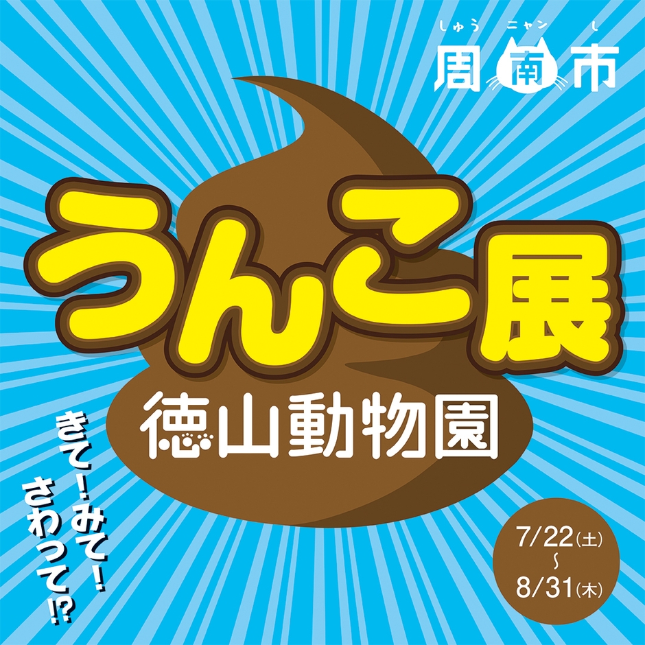 しゅうニャン市という愛称でまちのPRを進める山口県周南市は、周南市にある徳山動物園にて、生き物にとって大切な働きをしている排せつ物にスポットをあてた「きて!みて!さわって!?うんこ展」を、2017年7月22日(土)から8月31日(木)まで開催することをお知らせします。