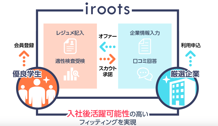 スカウト型新卒採用サービス「iroots」