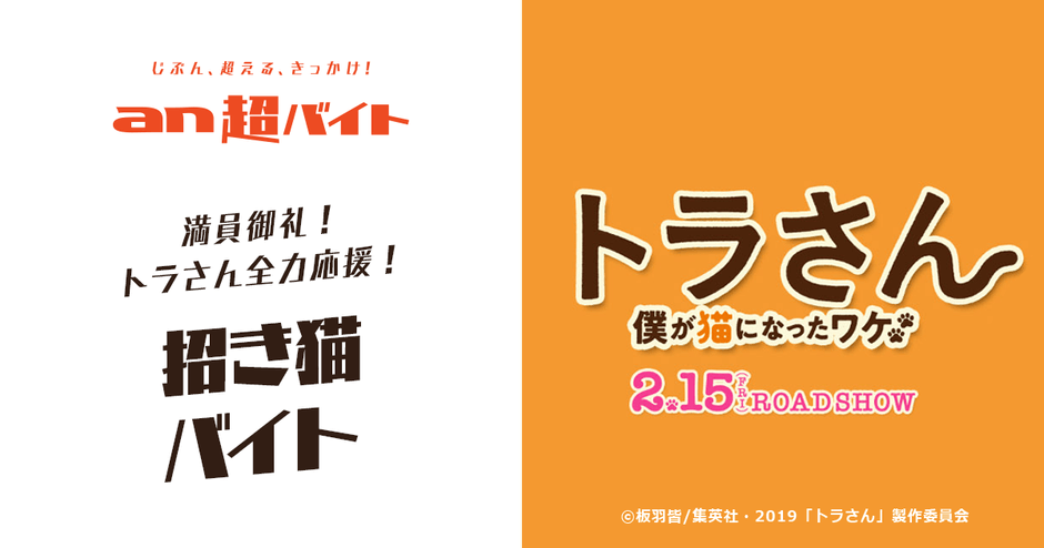 映画『トラさん~僕が猫になったワケ~』×「an超バイト」 満員御礼!トラさん全力応援“招き猫バイト”募集!