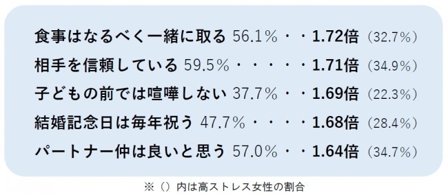 低ストレス女性は、パートナーとのコミュニケーションとして“食事を一緒に取っている”