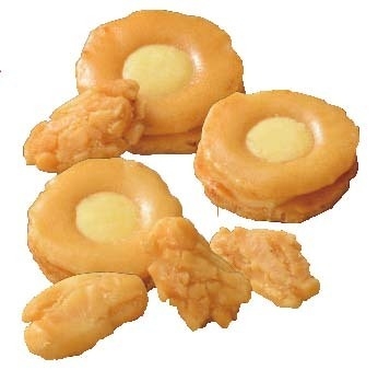 香ばしく焼きあげたおかきを、味わい深い醤油で仕上げ、濃厚でなめらかなチーズクリームをサンドしたミニサイズのチーズおかきと、かつお風味豊かなサクサク食感のあられをミックスしました。あられとチーズのハーモニーをお楽しみいただけます。