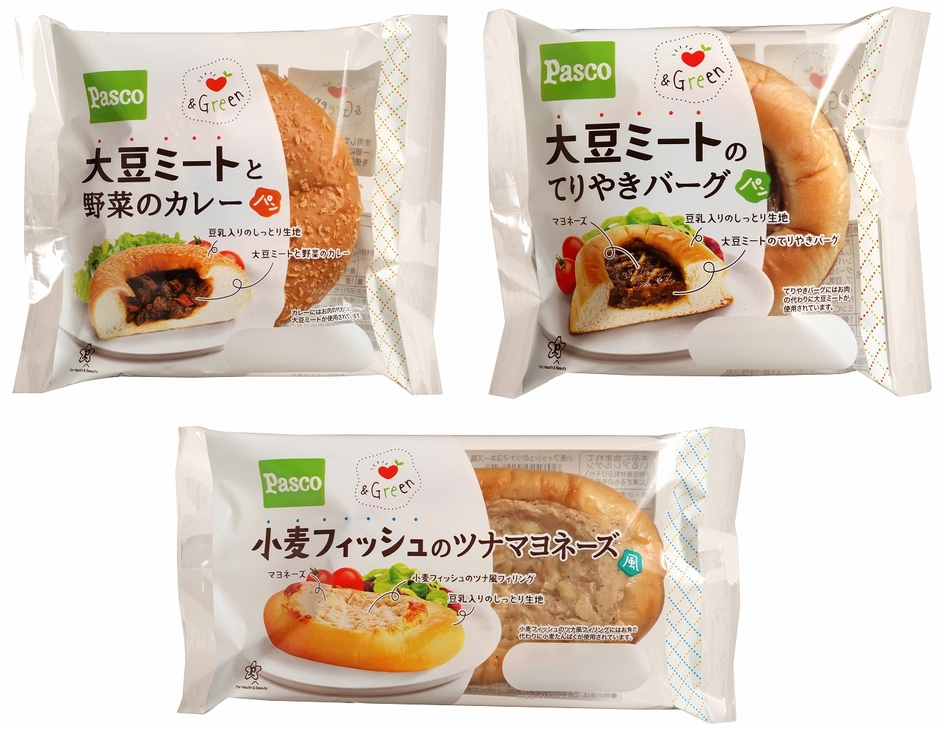 敷島製パン株式会社(Pasco)は、植物性素材を使用した新シリーズ「大豆ミートと野菜のカレーパン」、「大豆ミートのてりやきバーグパン」、「小麦フィッシュのツナマヨネーズ風」の3アイテムを2020年6月1日より、関東、中部、関西、中国、四国地区にて発売します。