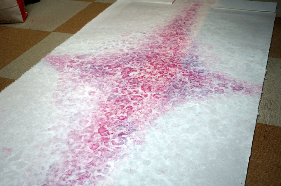日本家屋の減少と共に襖紙を使う機会が激減している現状に危機感を覚え、襖紙の紙漉き現場に存在する表現技法を生かした商品を新たに開発、今後、海外で開催されるインテリア関連見本市出展により、国内外に向けて襖紙の知名度アップに繋げたいと考えました。