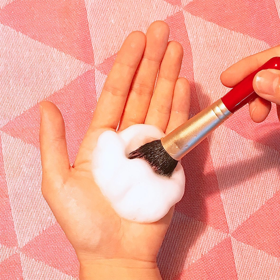 3、泡にブラシを当て、やさしく円を描くようになじませる