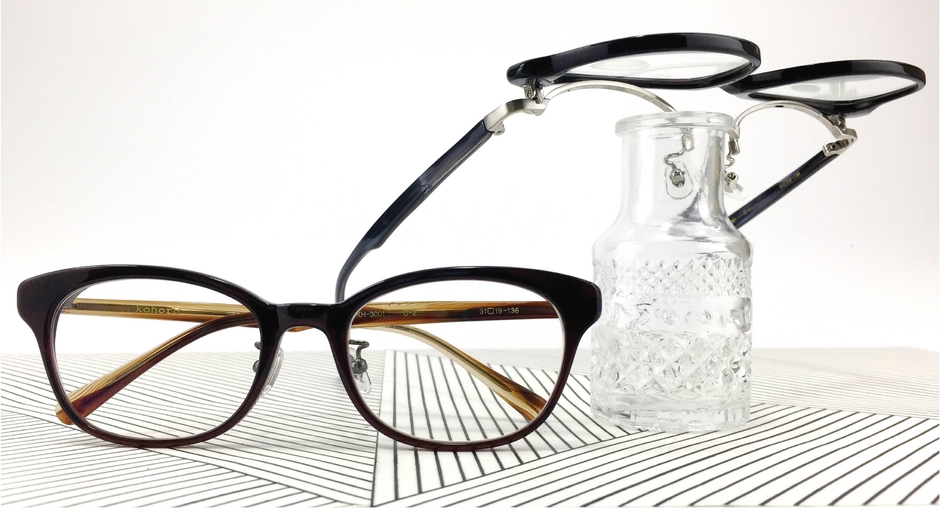 「Kohoro KH-1006」は、フレームのフロントを上に持ち上げ、跳ね上げられることが特徴の「跳ね上げ式」です。従来、跳ね上げ式メガネにはあまりなかったクラシックテイストを取り入れることで、機能性だけでなく、ファッションアイテムとして「目的に応じての、さまざまな使い方」と「シーンやスタイルにあったデザイン」が両立した、跳ね上げ式メガネが実現しました。