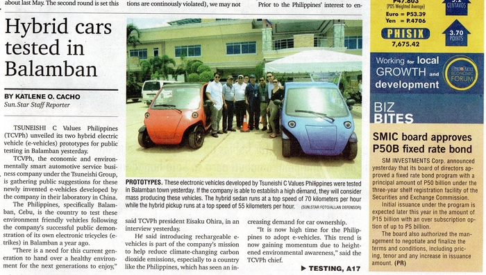 TSUNEISHI C VALUES PHILIPPNES,Incがセブ島バランバンでEVの試乗会を開催