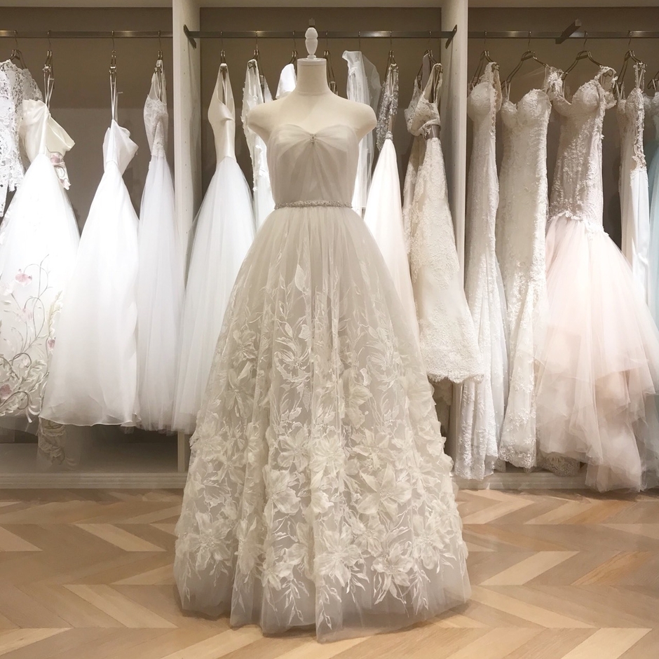 ドレスは2着限定のセルドレスにてご用意しております。お買い上げ後すぐお持ち帰りいただけるので、海外挙式や挙式間近の花嫁様に大変おすすめです。ご試着は11月1日(水)より可能です。