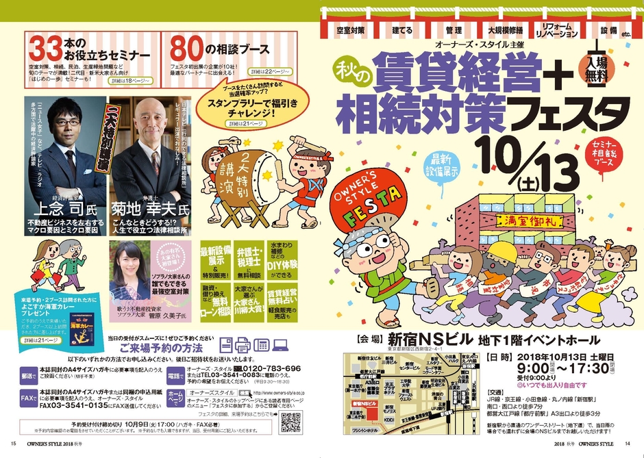 首都圏最大級の大家さん向け賃貸経営イベント 「秋の賃貸経営+相続対策フェスタ」10月13日開催 弁護士 菊地 幸夫氏&経済評論家 上念 司氏 特別登壇!