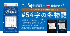 「第3回 54字の文学賞」は、『54字の物語 怪』(作・絵/氏田雄介)の発売を機に2018年11月から開催しているキャンペーンで、オリジナルの「54字の物語」を募集しています。このたび新設する「日清ヨーク賞」は、「ヨークル 54字の冬物語」(税別121円)発売日の2019年1月8日より、「冬をテーマにした54字の物語」をTwitterで広く募集するものです。