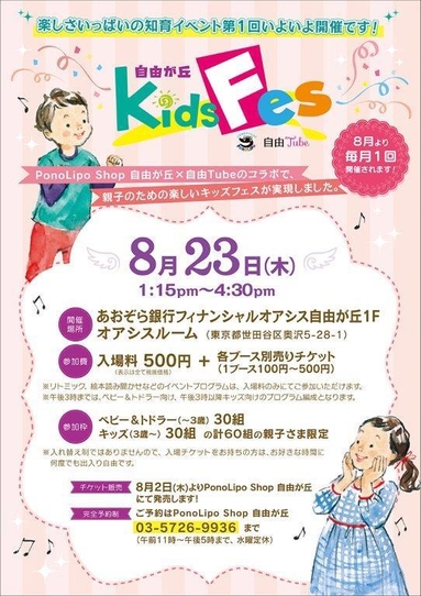 自由が丘のショップが発信する動画情報サイト「自由Tube」(運営:自由Tube事務局)は、夏休み真っ盛りの2018年8月23日(木)に、英語絵本と輸入玩具のセレクトショップ「PonoLipo Shop 自由が丘」とコラボしたイベント、第1回「自由が丘 Kids Fes」を開催します。