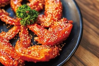 超ジューシーの韓国式炭火焼きチキンを堪能できる。今回手羽先を2種の味付けで祭りに参加。