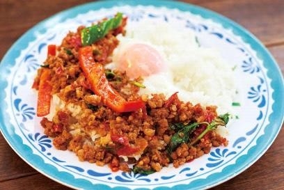 激辛ガパオ丼を頰張れば、本場の辛さと旨さが同時に体感できる。