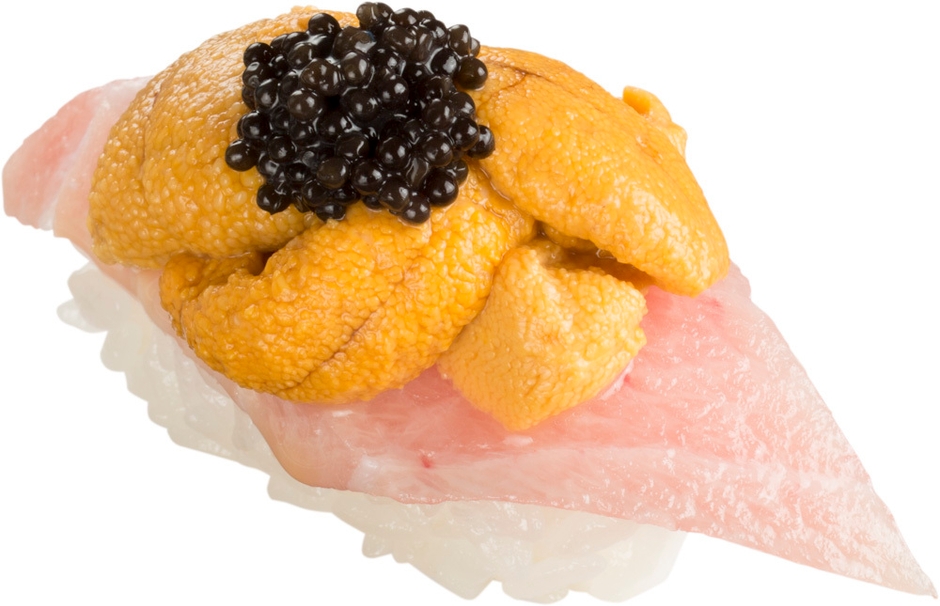 上質な脂のりの大とろの上に、 「うに」・「ランプフィッシュキャビア」がのった豪華寿司。