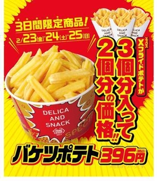 あの バケツポテト が帰ってくる! フランクフルト と おにぎり もお買い得な3日間 2/23(金)~2/25(日)