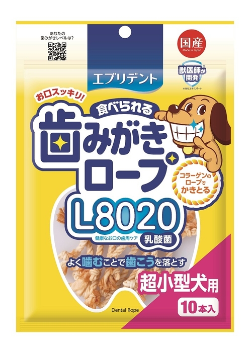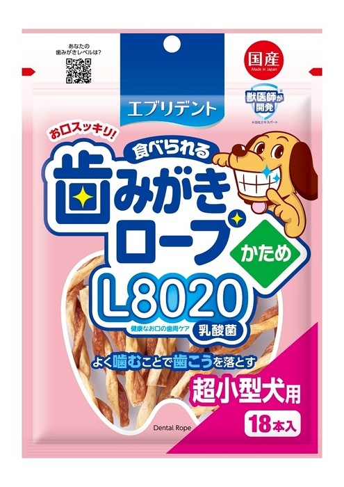 獣医師※1が開発したエブリデントに、L8020乳酸菌※2を配合した ワンちゃん用「食べられる歯みがきロープ」が新登場! ※1当社エキスパート