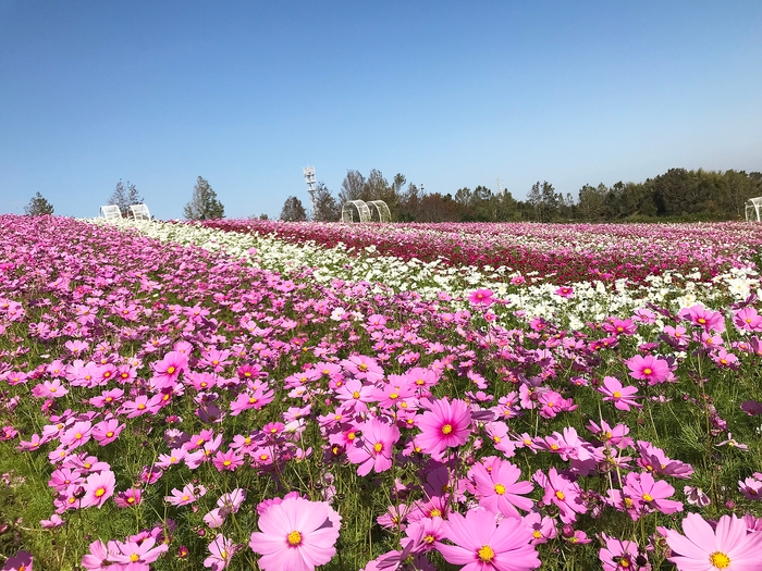 大阪ハーベストの丘で、華麗なグラデーションの 「50万本のコスモス」が見頃を迎えています!