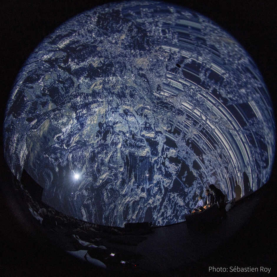 昨年の「MUTEK.JP 2017」に、3Dドーム映像ライブパフォーマンスとしてプレミア公開後、今年「MUTEK Montreal 2018」の会場のひとつ、SAT(科学芸術機構)の「Satosphere」でフルドームライブ公開しました。本作では、同時に継続的な日本科学未来館とのコラボレーションで、映像技術と視覚表現の実験をすすめ、「BLOCK UNIVERSAL」がテーマの「MUTEK.JP 2018」では、ドーム3Dバージョンと、ドームとは逆の“外側からの視点”で映像を体感できる地球ディスプレイ「Geo-Cosmos(ジオ・コスモス)」バージョンを発表します。